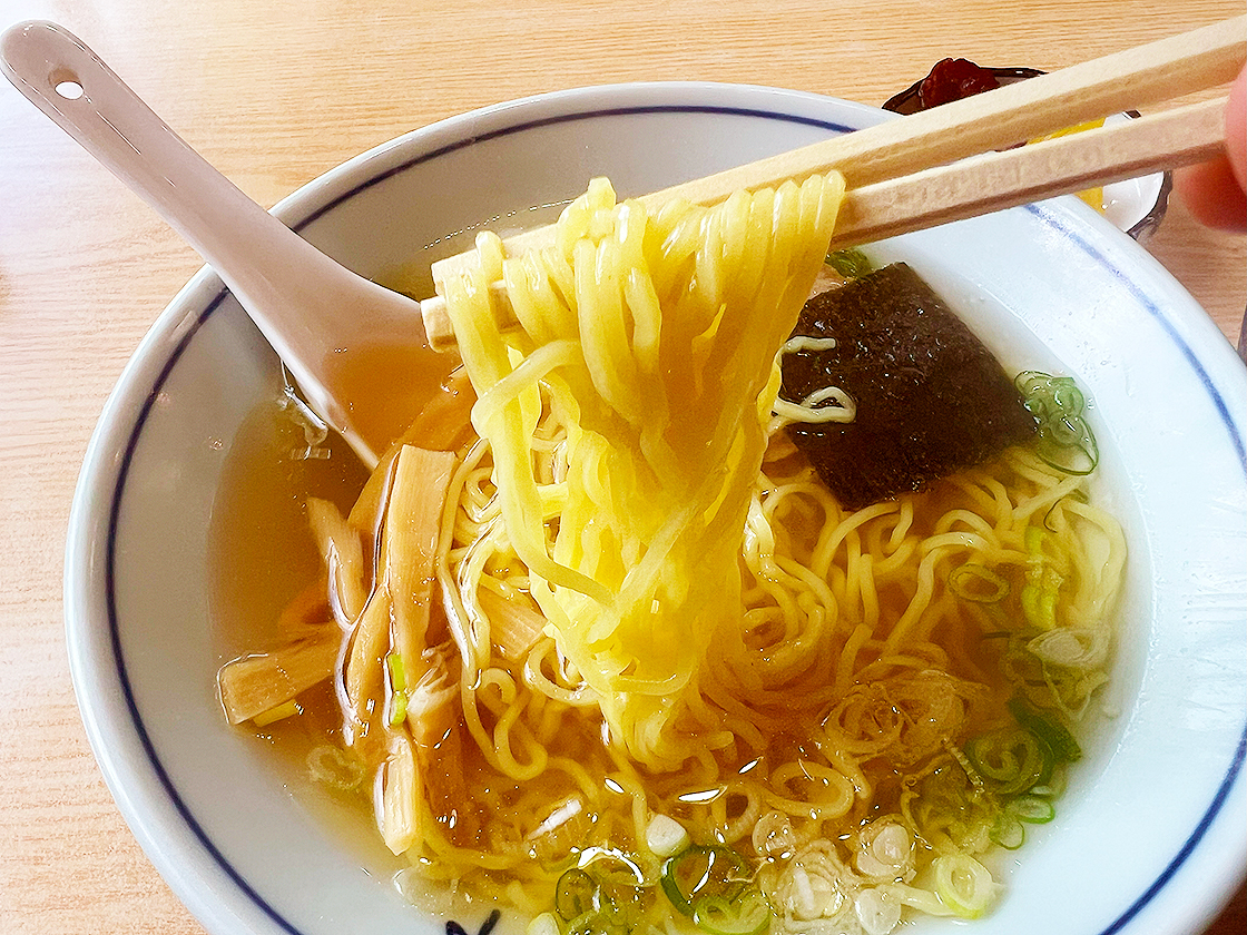 透き通った黄金色のスープに、つるっとしたちぢれ麺が泳ぐ“王道のあっさり中華そば”です♪