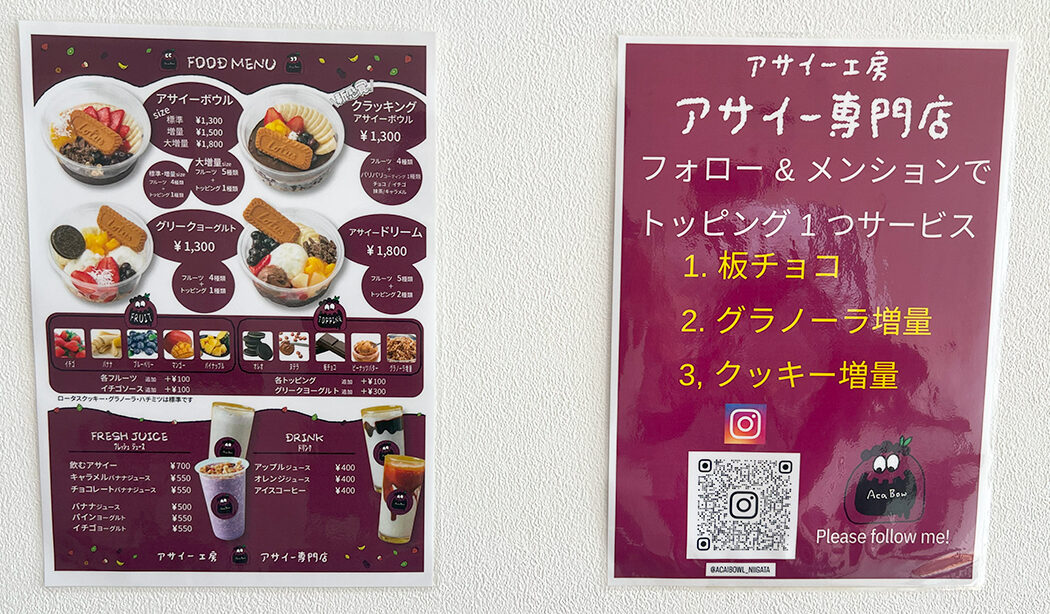 県内初出店となる『アサイー工房 新潟駅南店』でも、アサイーを使ったメニューが充実していますよ!