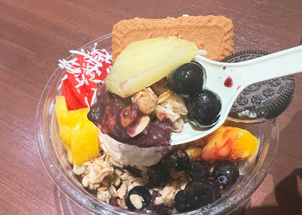 濃厚なアサイーとフルーツの甘酸っぱさ、そしてトッピングのサクサク感が絶妙なバランスで、やみつきになる一品です♪