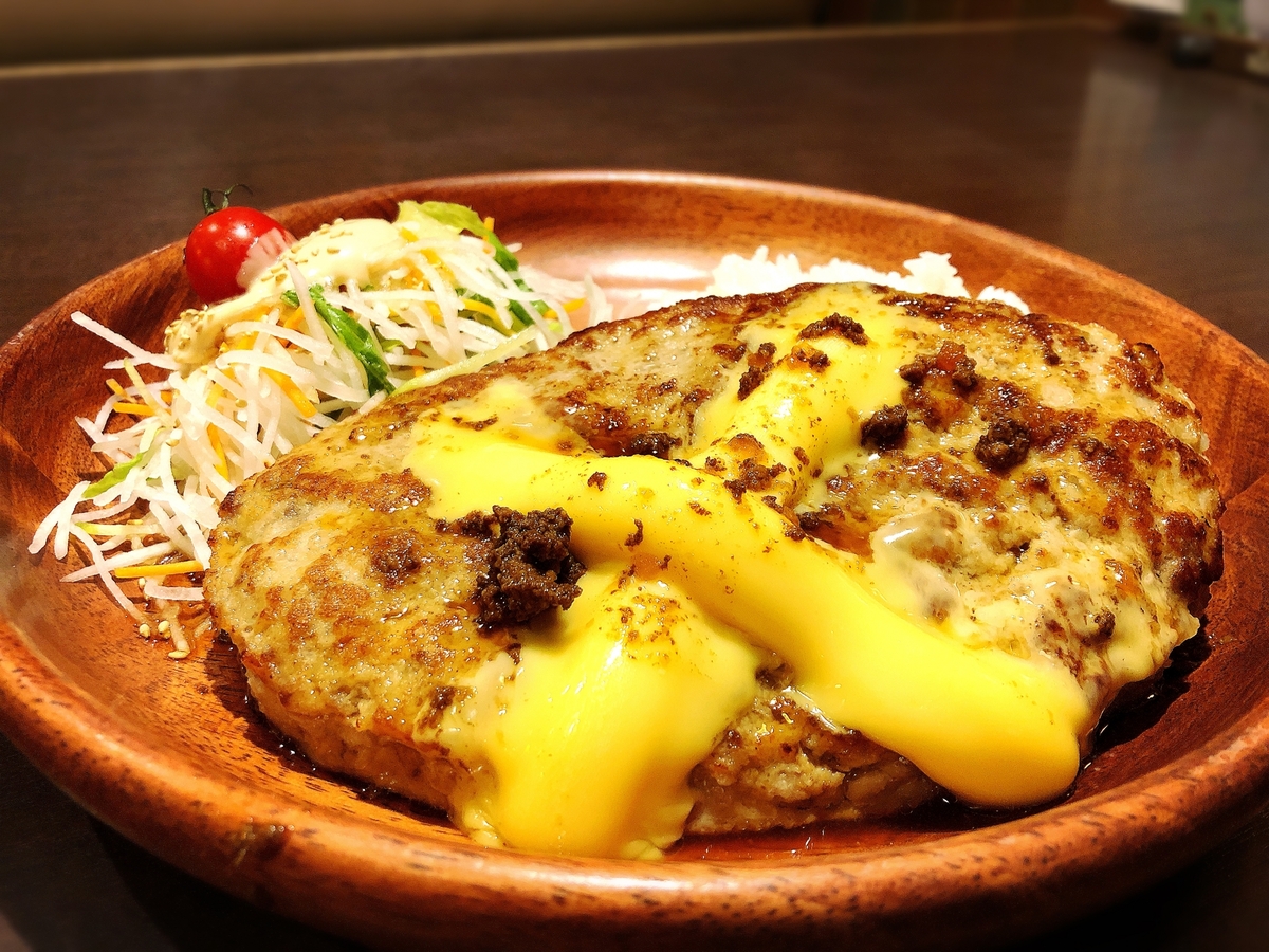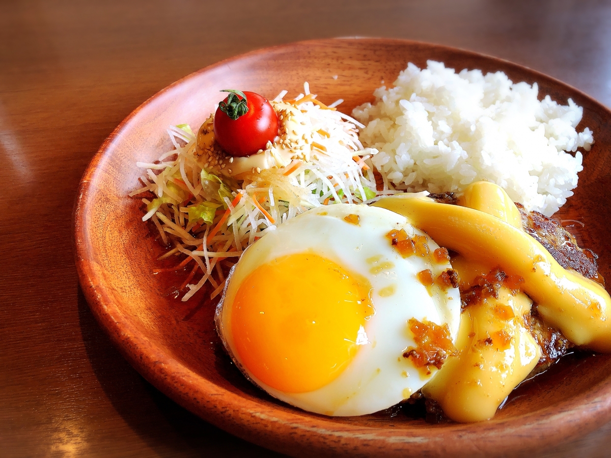 半熟の目玉焼きと、和風ベースのオリジナルハンバーグソースの組み合わせは絶品ですよね♪