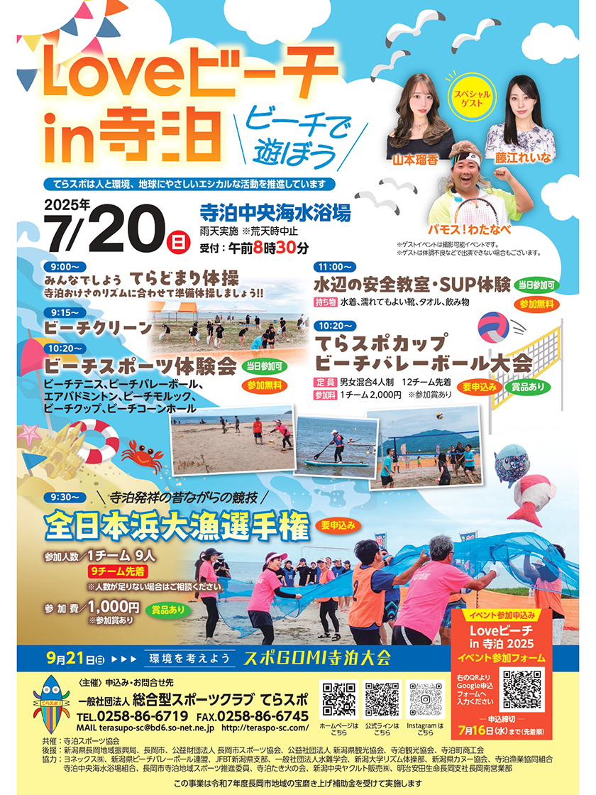 『Loveビーチ in 寺泊 ~ビーチで遊ぼう~』が7月20日(日)に開催されますよ♪