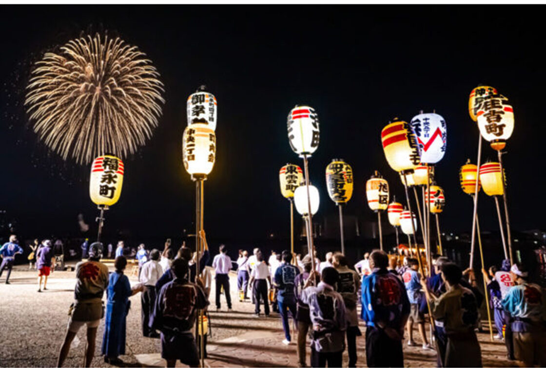 ”高張提灯や屋台、花火のコラボ”はとても幻想的です…♪