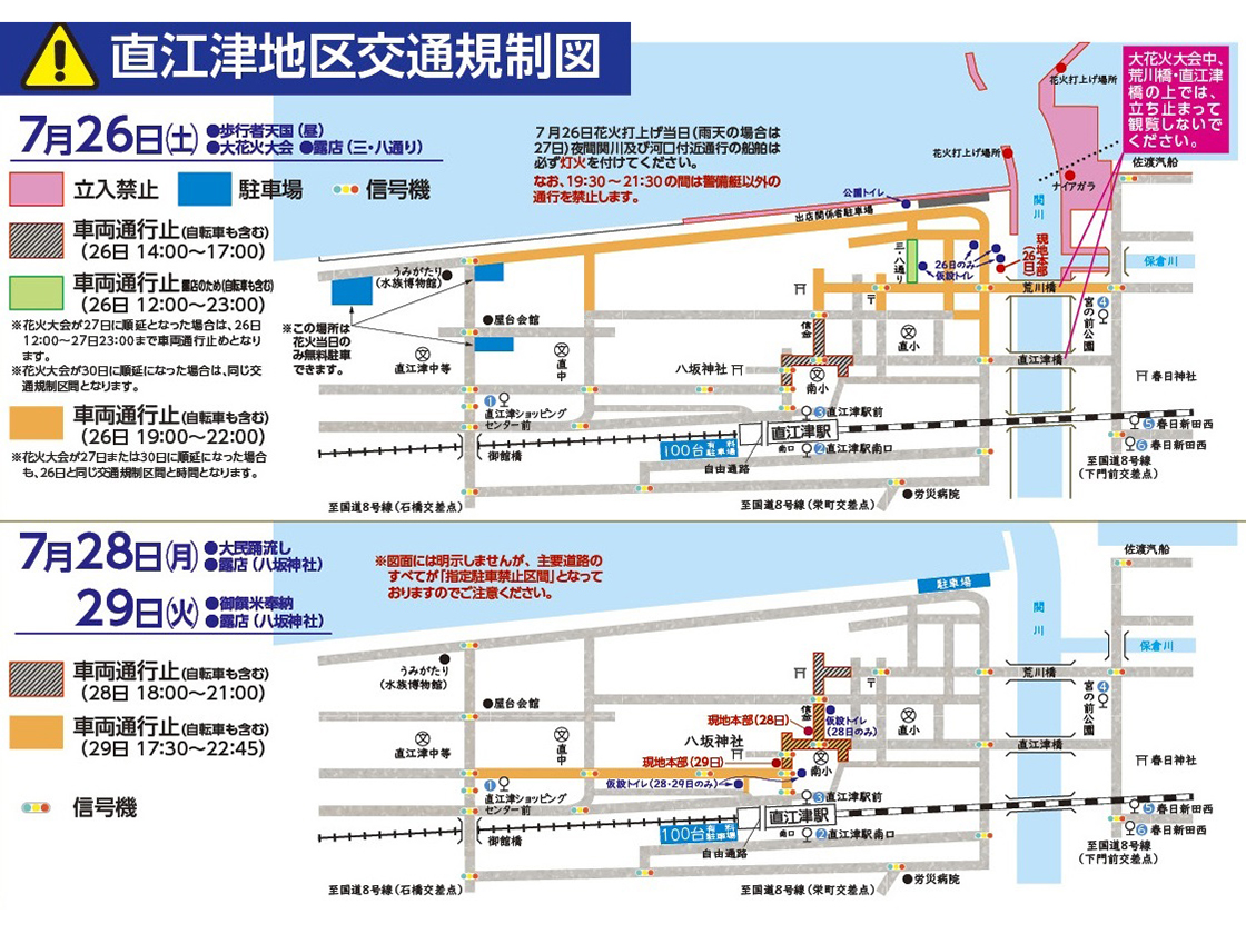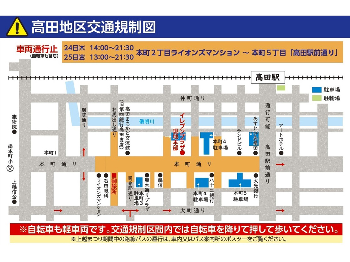 期間中は、高田・直江津の両地区で交通規制があるので、ご注意くださいね!