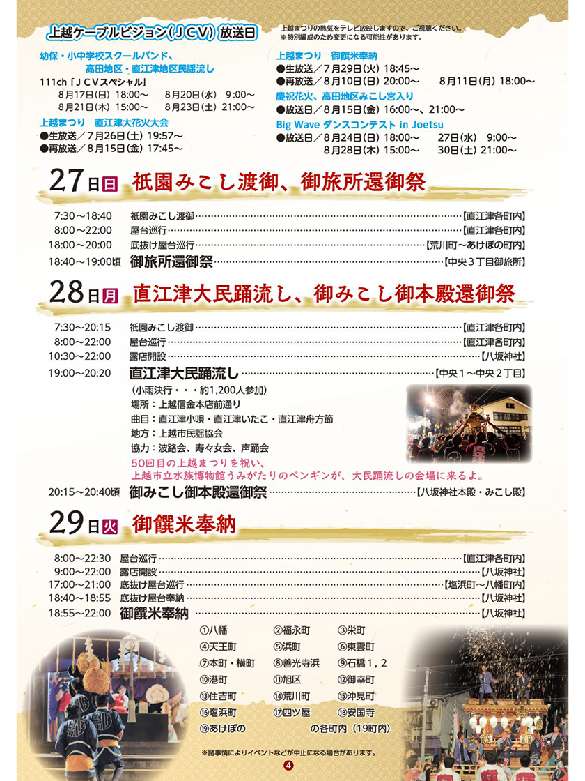 「新潟県無形民俗文化財」にも指定され、”前半は高田地区”、”後半は直江津地区”がお祭りの舞台に♪