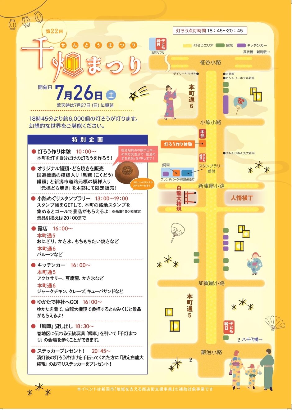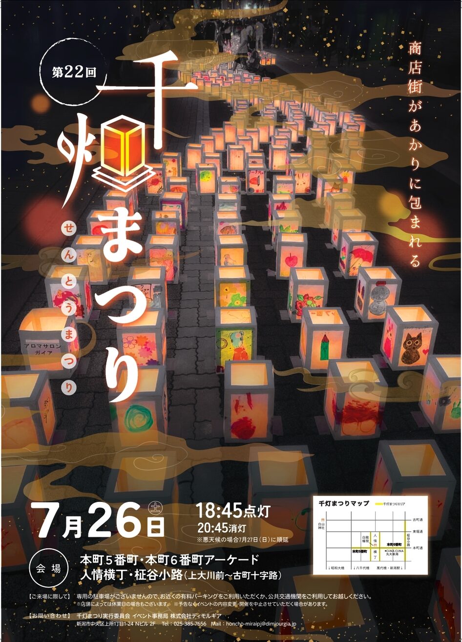 TOP > イベント > 【新潟市中央区】約6,000個の灯ろうが幻想的な空間を演出♪『第22回千灯まつり』が7月26日に開催!“オリジナルの灯ろう”で商店街を照らそう♪