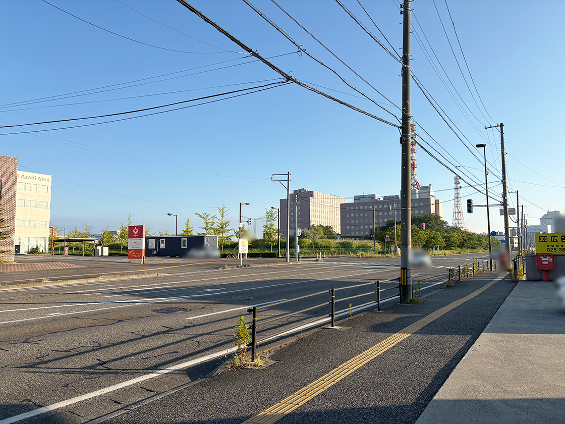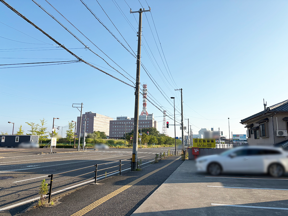 「新潟バイパス 女池IC」から車で約11分、「バス停 網川原」からは徒歩で約1分の場所にあります。