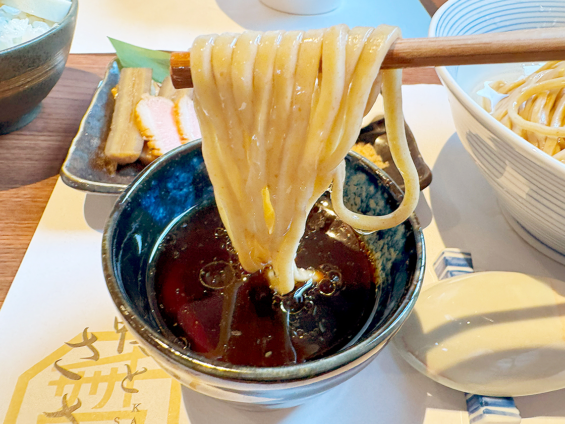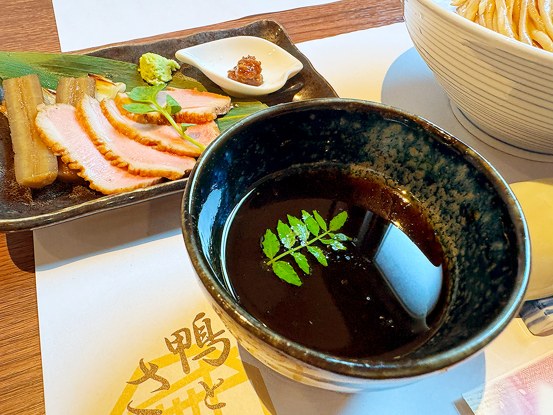 つけ汁はしっかり目の醤油感があり、鴨肉や麺のおいしさを引き立てます!