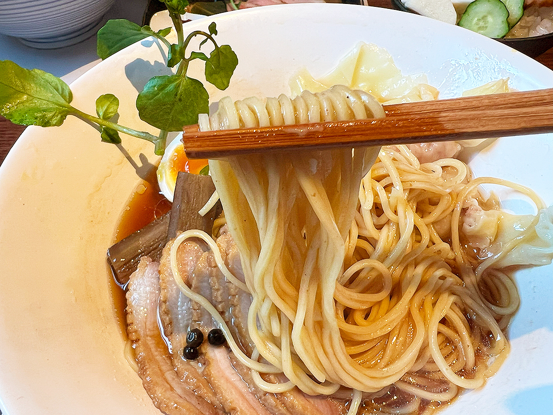 鴨に合うように追求した特注麺にもしっかりとスープが絡み、すすり心地・食感・香りともに大満足です♪