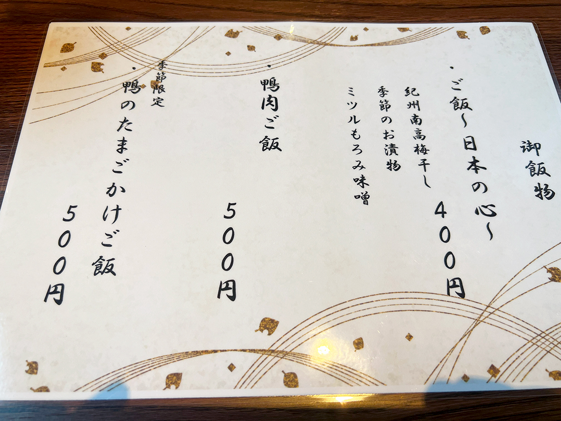 季節限定の「鴨のたまごかけご飯(500円)」は春を予定しているので、来春を楽しみに待ちましょう!