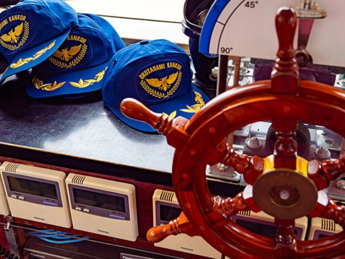 舵輪を握りながら、“面舵や取舵などの専門用語”を丁寧に教えてくれますよ♪