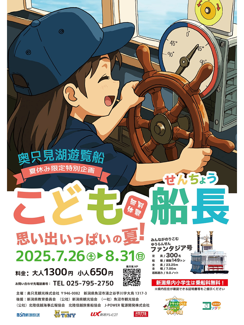 『奥只見湖遊覧船 こども船長』が8月31日(日)まで開催中ですよ♪