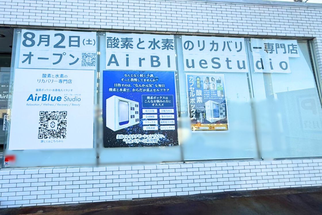 酸素と水素のリカバリー専門店『AirBlue Studio(エアーブルースタジオ) 南笹口』が8月2日(土)にオープンしますよ!