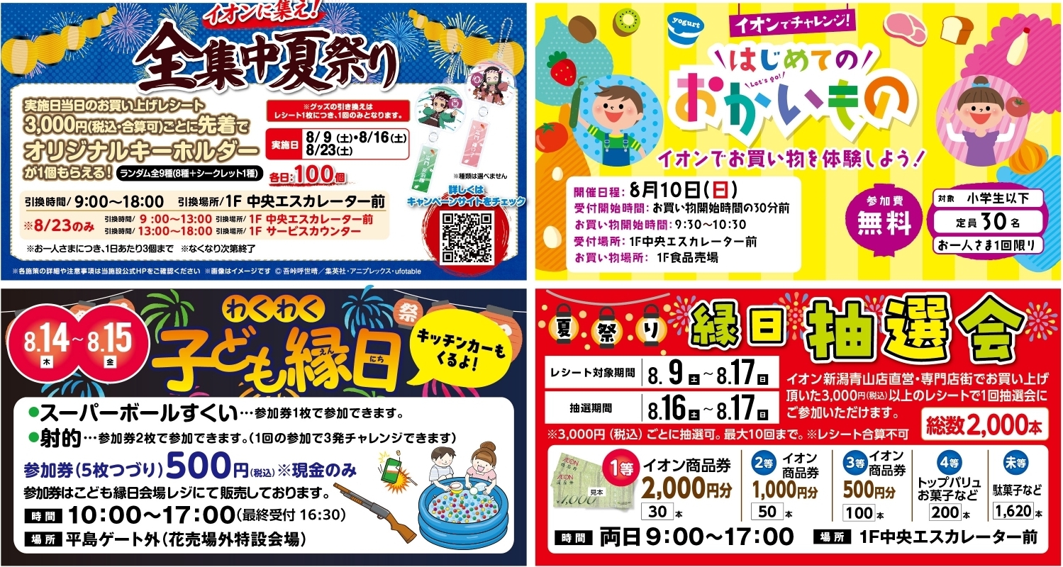 「イオン新潟青山店 専門店街」でお盆を満喫!8月8日~17日の『サマーセール・子ども縁日・限定グルメ』情報をチェック♪