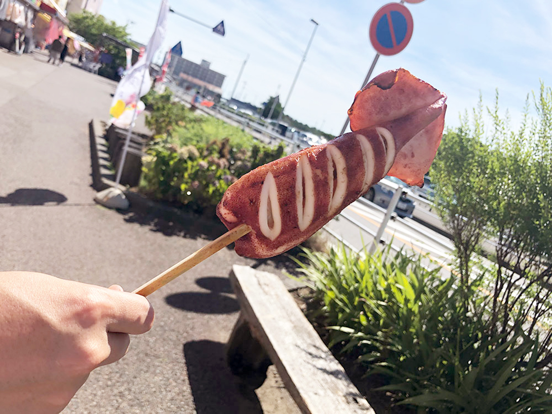 イカやホタテなどを焼いた名物の「浜焼き」は、花火鑑賞のお供にもぴったり♪