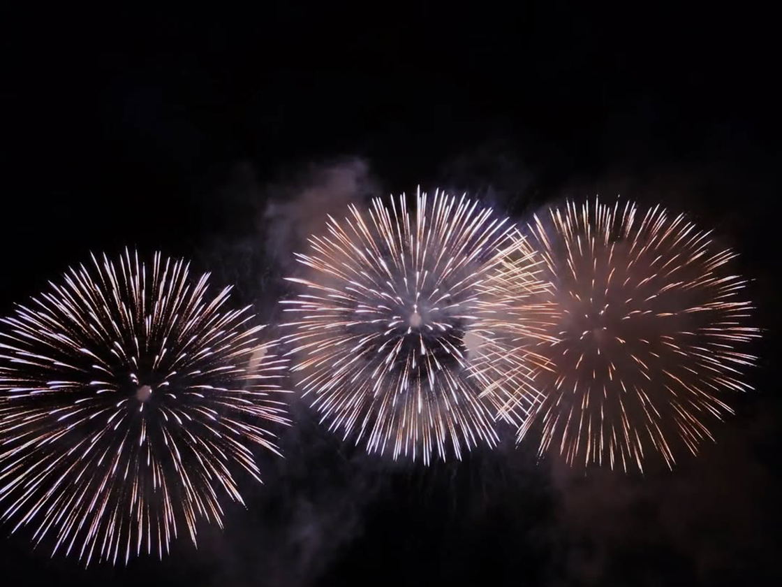 夜空を埋め尽くす迫力満点の花火と、地形を生かした音響を楽しめますよ!