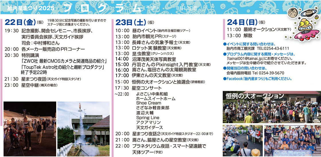 『第42回 胎内星まつり』は、8月22日(金)~24日(土)まで開催されます!