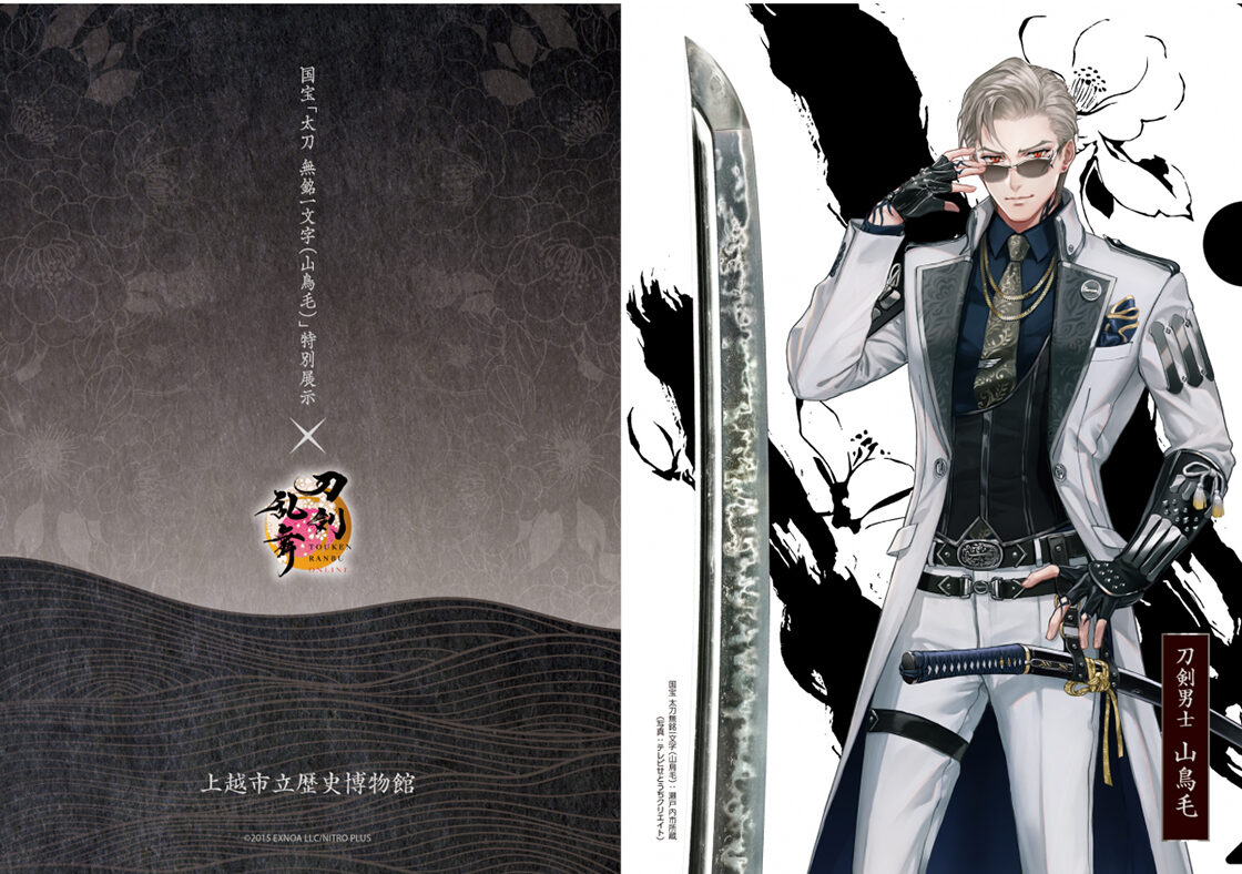 博物館入口に“刀剣男士・山鳥毛(さんちょうもう)の等身大パネル”を設置するほか、「A4コラボクリアファイル(660円)」を販売します!