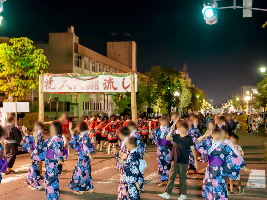 揃いの浴衣や法被を着た踊り子が「謙信公大通り」を踊り流し、お祭り気分も最高潮に♪