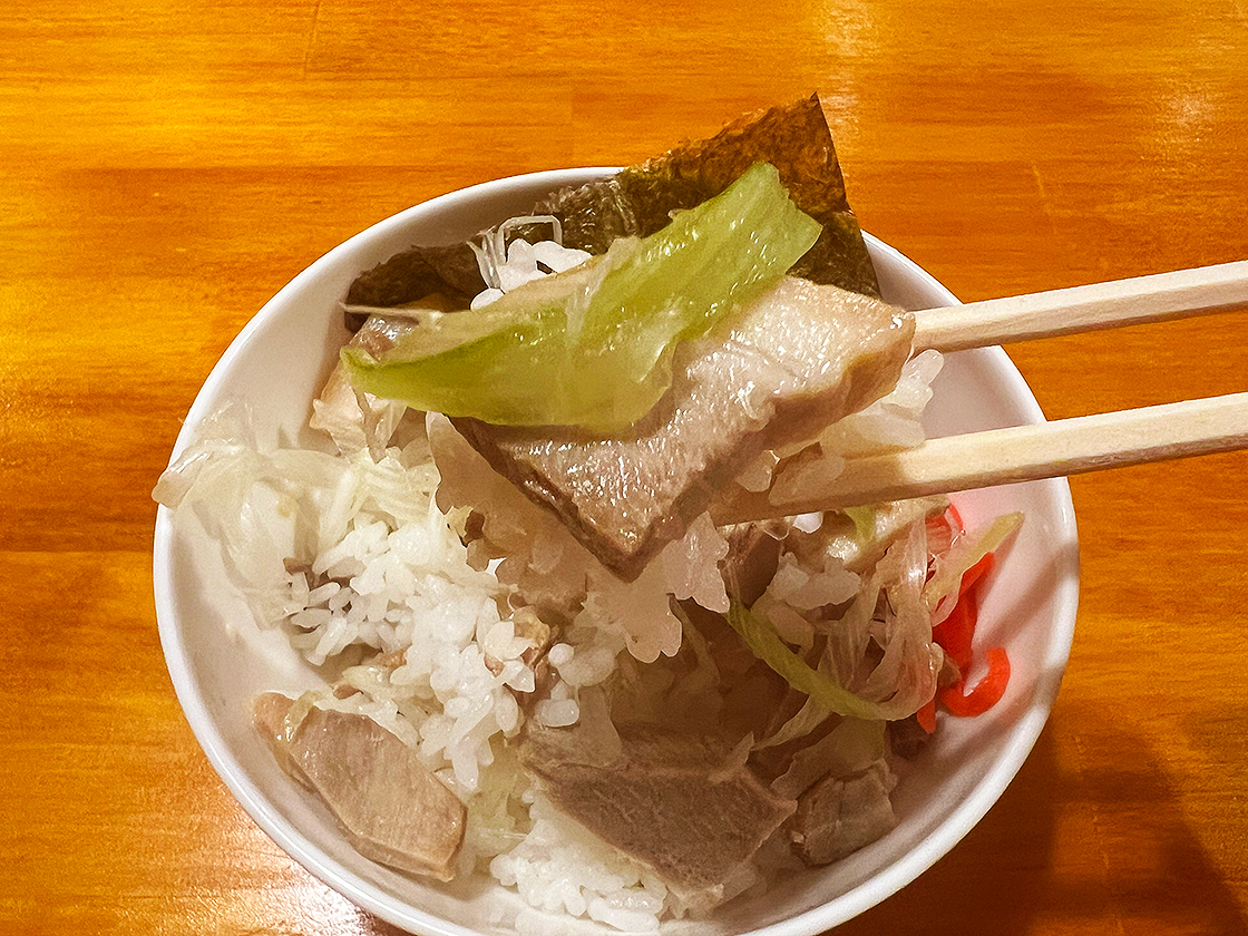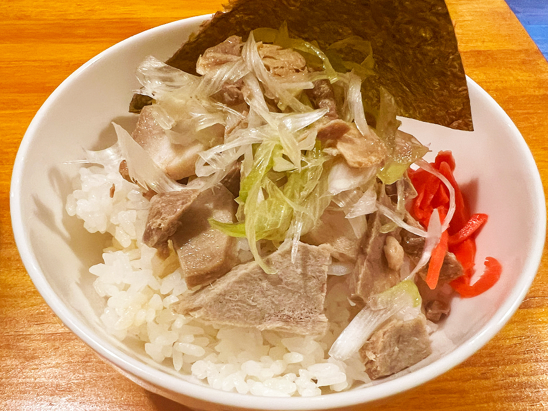 一緒に注文した「ミニチャーシュー丼」は、細切れのチャーシューがたっぷりの一品!