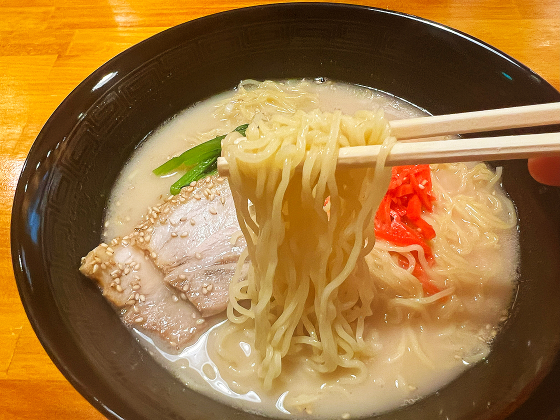 豚骨の芳醇な香りが鼻をくすぐり、空腹のガタチラの食欲をさらに刺激…♪