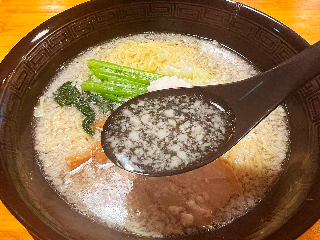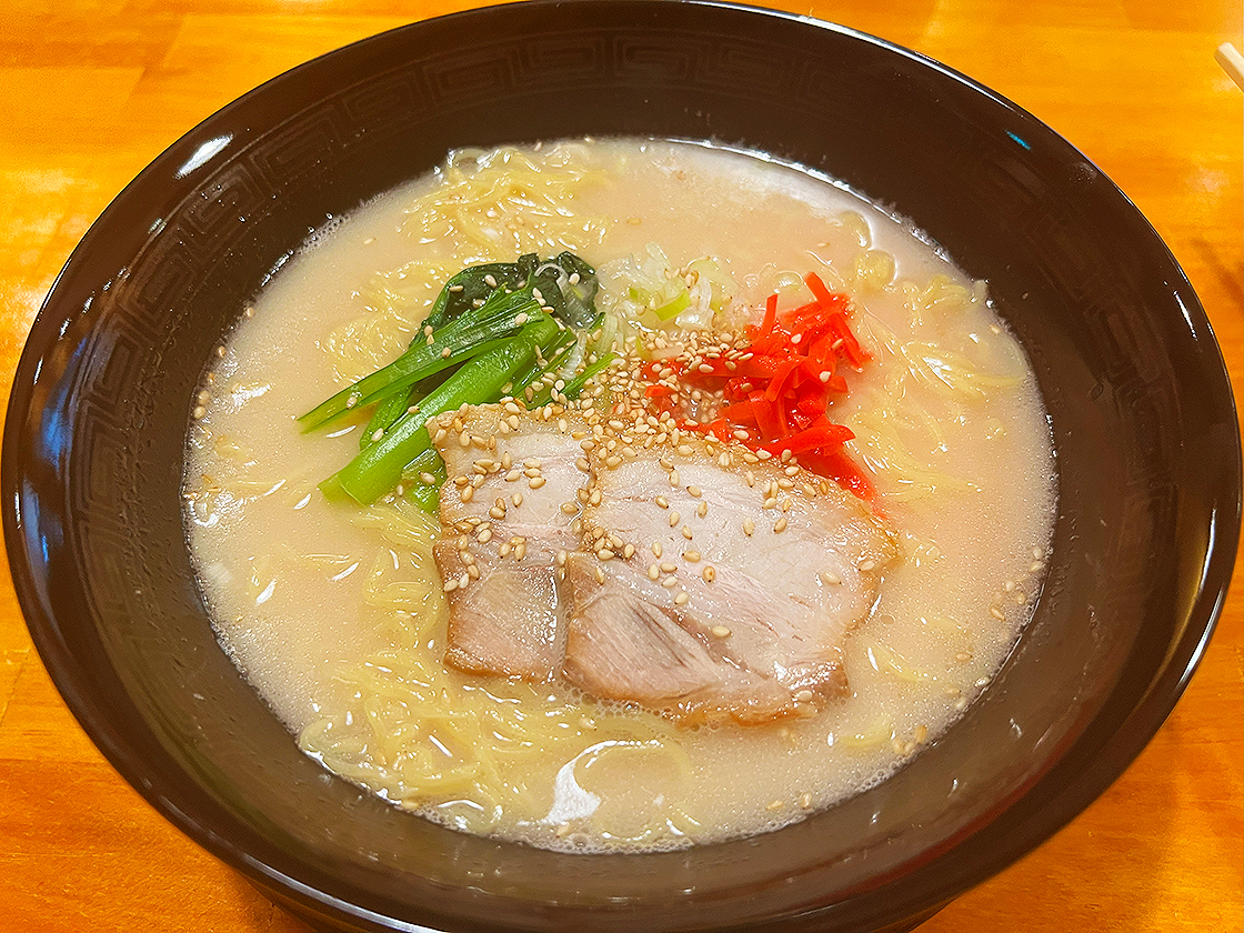 白く濁ったスープに紅しょうがが映えて、シンプルながらも存在感のある一杯です!