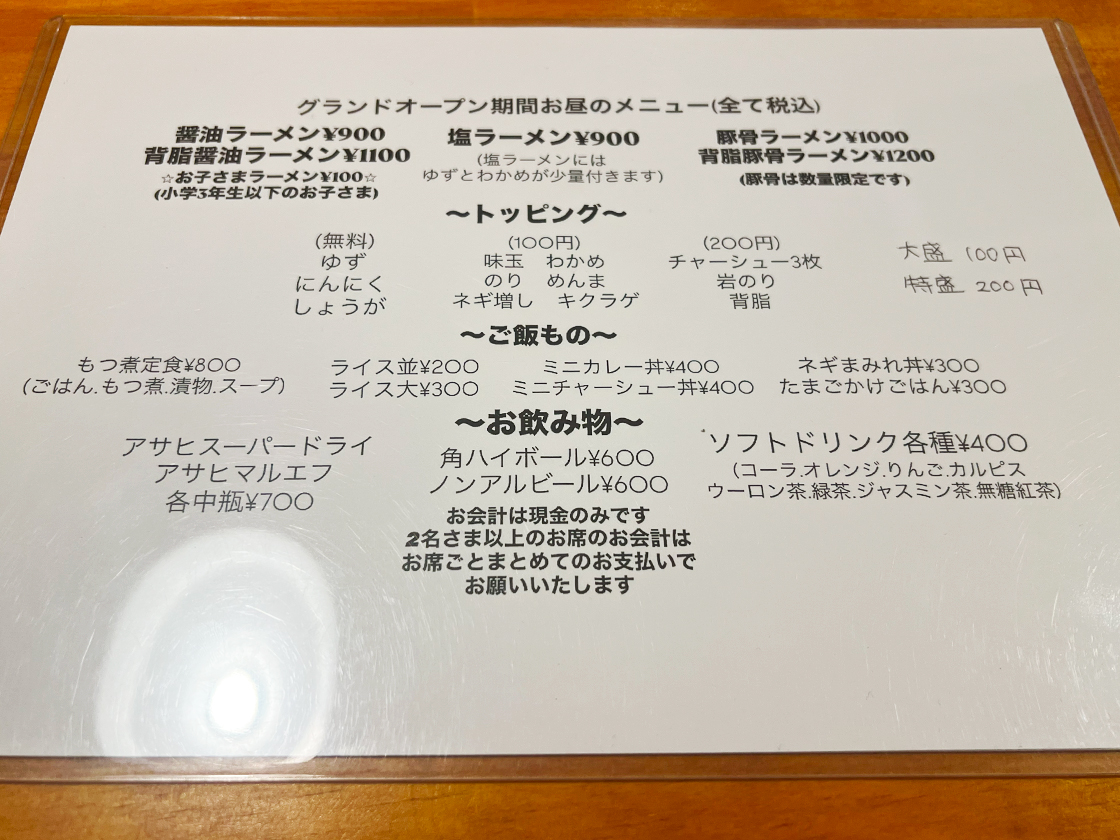 早速行ってきたガタチラが、数量限定メニューである「豚骨ラーメン」 のほか、「背脂醬油ラーメン」と「ミニチャーシュー丼」をご紹介します!(取材日:2025年8月9日)