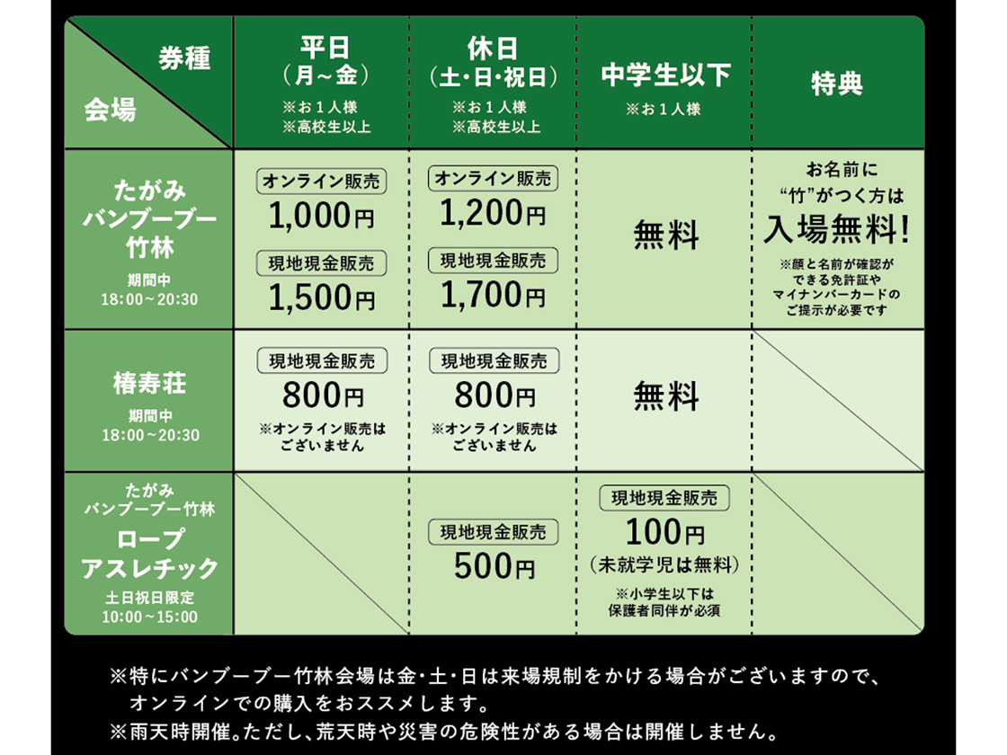 【たがみバンブーブー竹林内 特別会場イベント】