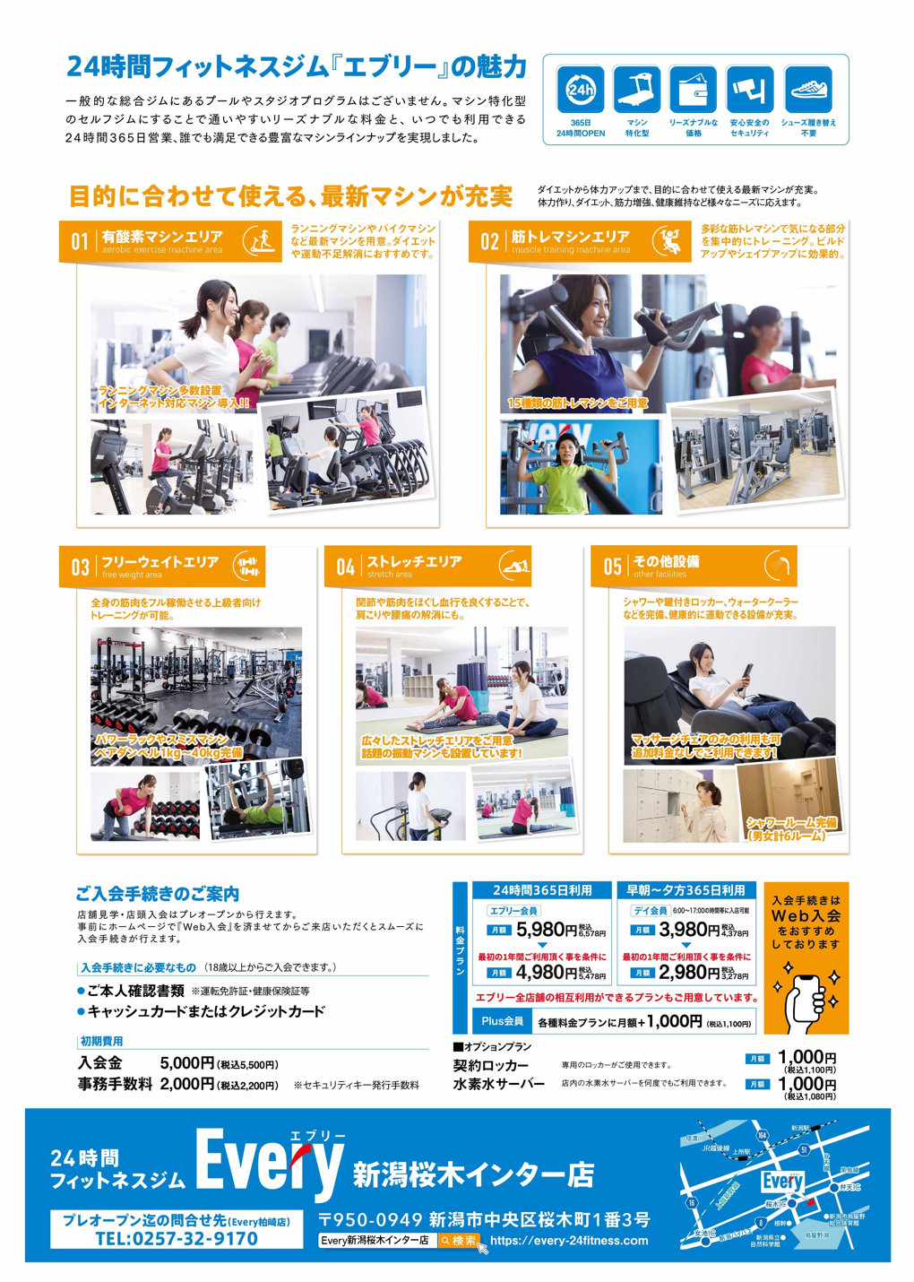 TOP > 開店 > 【新潟市中央区】24時間フィットネスジム『Every 新潟桜木インター店』が11月4日にオープン!“最大20,746円”もお得になるキャンペーンを実施中♪