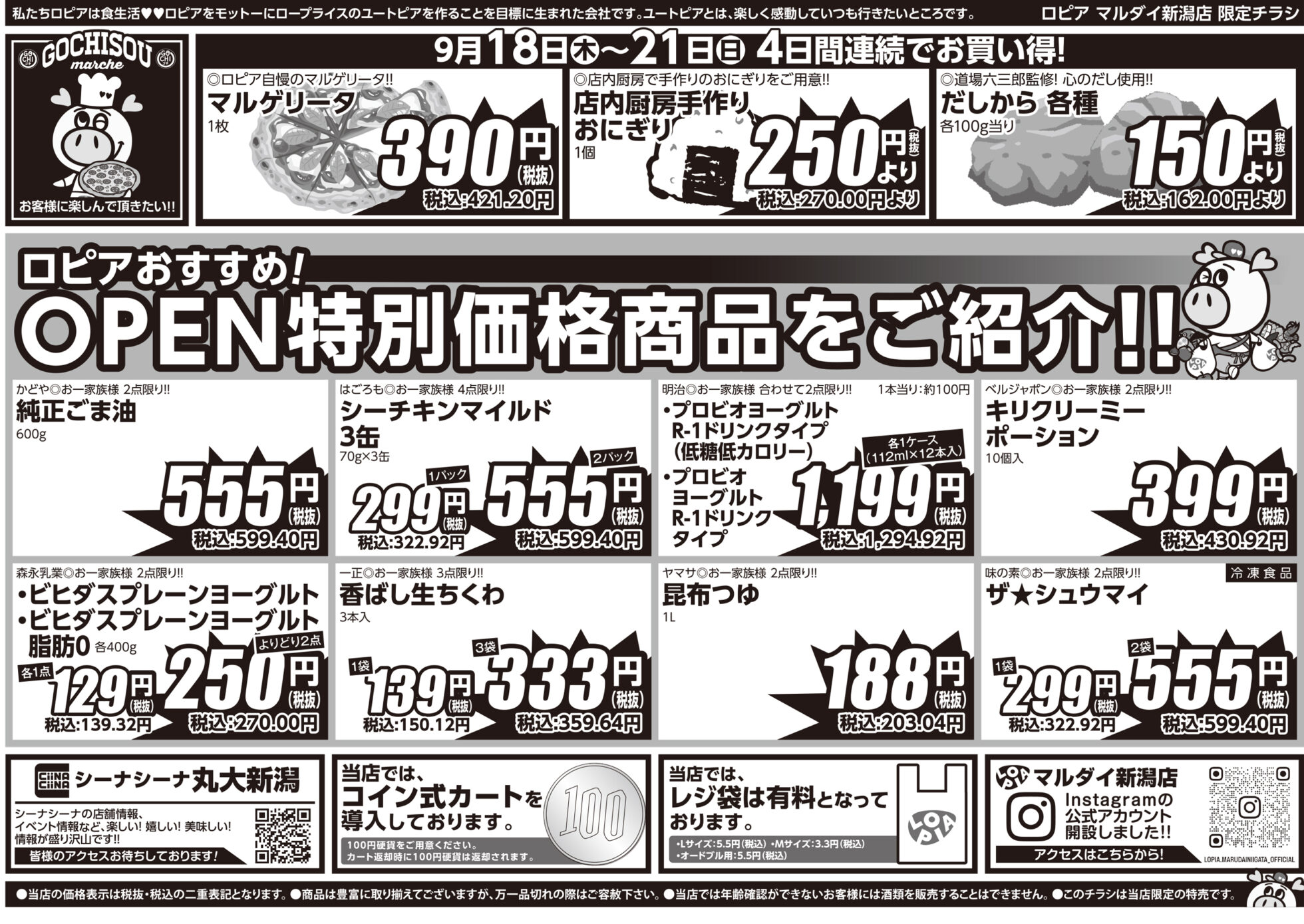 新潟エリア2号店『ロピア マルダイ本店』のオープンセール第1弾(9月18日~21日)をご紹介!「みなもと牛」や「マルゲリータ」などが特別価格♪