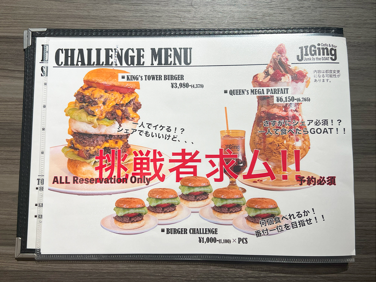 シェアもOKなので、「KING’S TOWER BURGER(4,378円)」や「QUEEN’S MEGA PARFAIT(6,765円)」に挑戦してみましょう♪