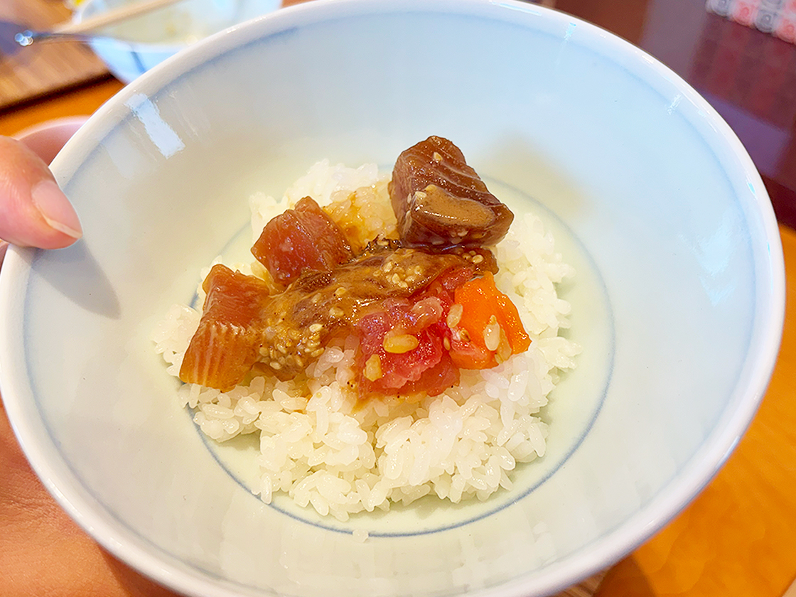 漬けマグロと焼き鯖の食感のコントラストも楽しめます◎