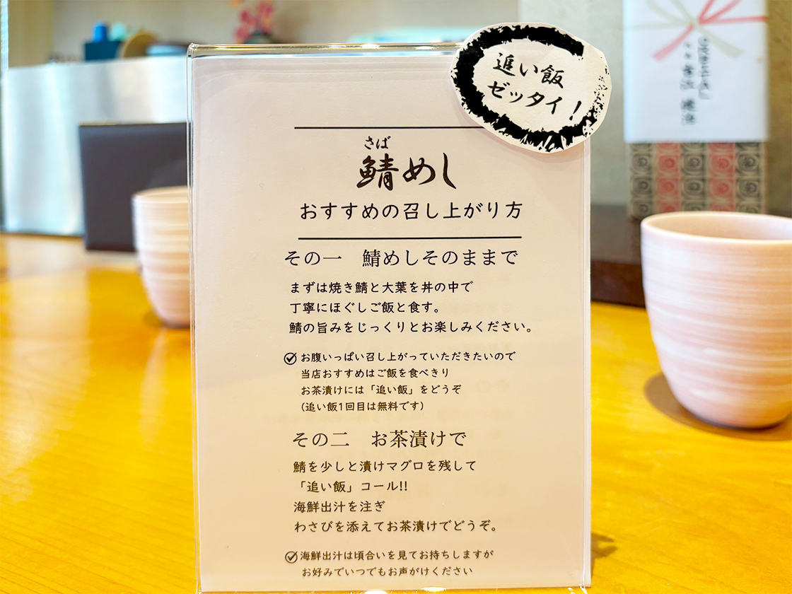 肴と米 うお福食堂の鯖めし 特製たれ焼きのお茶漬け