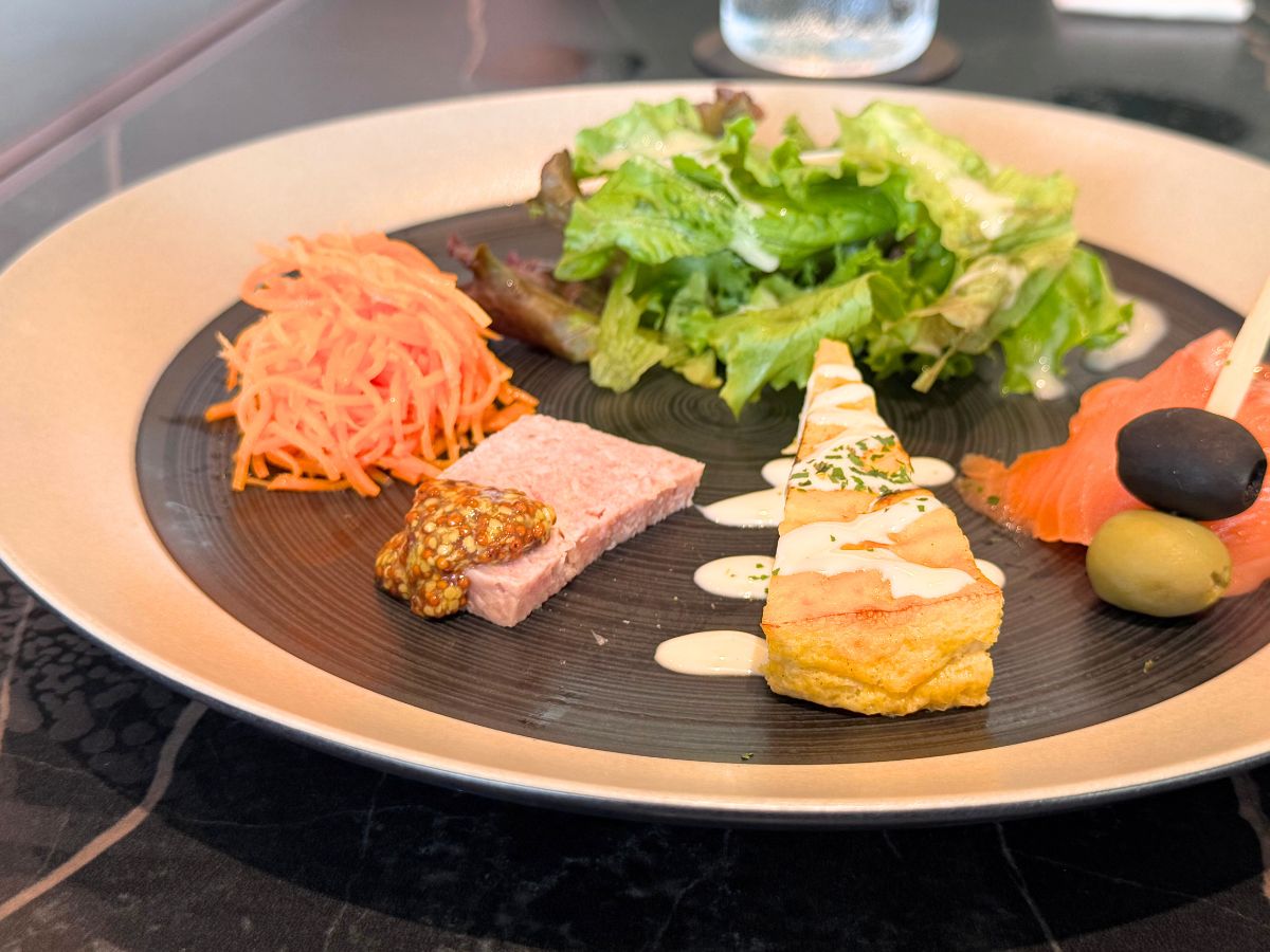 「キャロットラペ/豚肉のパテ/スパニッシュオムレツ/2種類のオリーブ/スモークサーモン」のどれもが絶品♪
