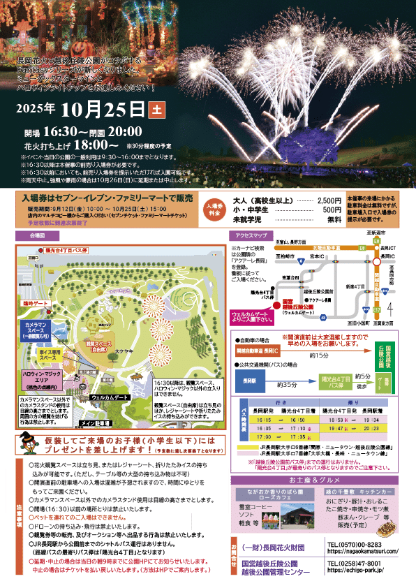 『長岡花火ハロウィンファンタジー(会場:国営越後丘陵公園)』が10月25日(土)に初開催されますよ♪