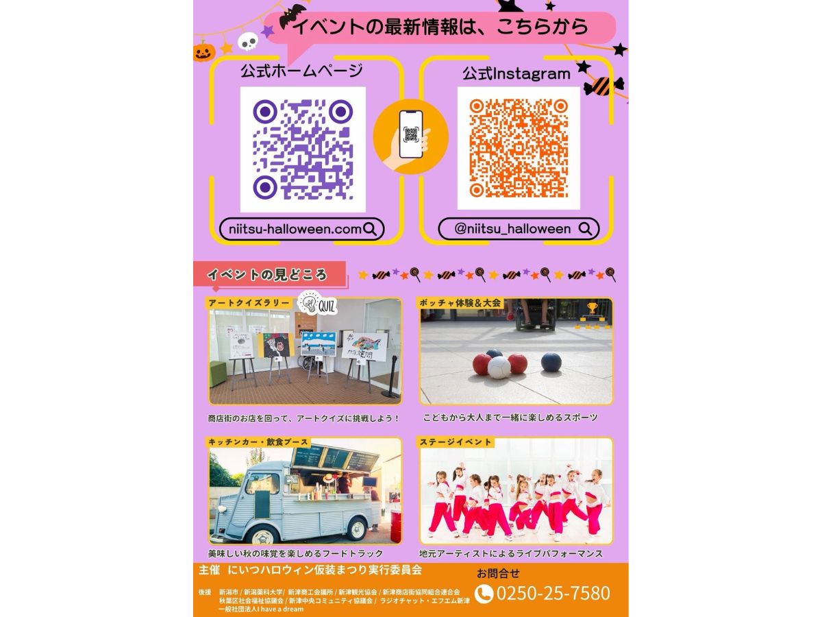 『2025 にいつハロウィン仮装まつり(会場:新潟薬科大学新津駅東キャンパス駐車場/新津地域交流センター)』が10月26日(日)に開催されますよ♪