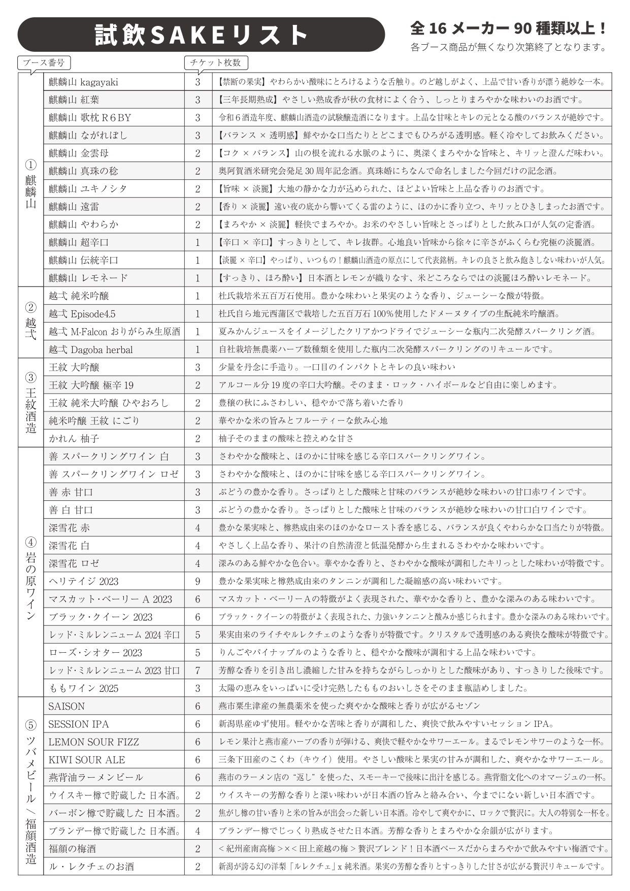 「前売券(2,500円)/当日券(3,000円)」とも、抽選会付きリーフレットと2,000円SAKEチケットが含まれていますよ!