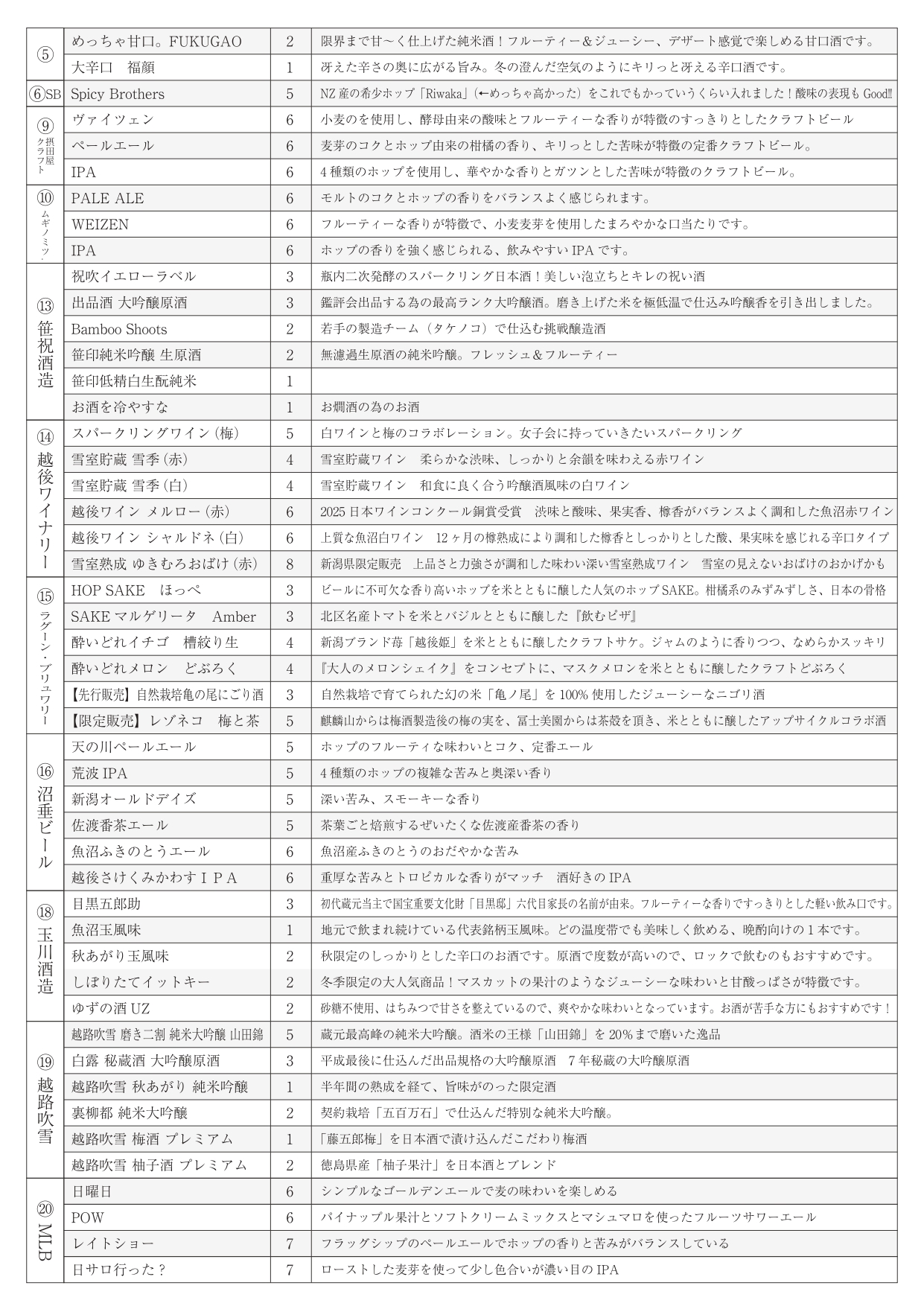 創業350年以上の「玉川酒造」のほか、今年6月に醸造を開始した「ムギノミツ.」など、老舗から新進気鋭の作り手まで勢ぞろい♪