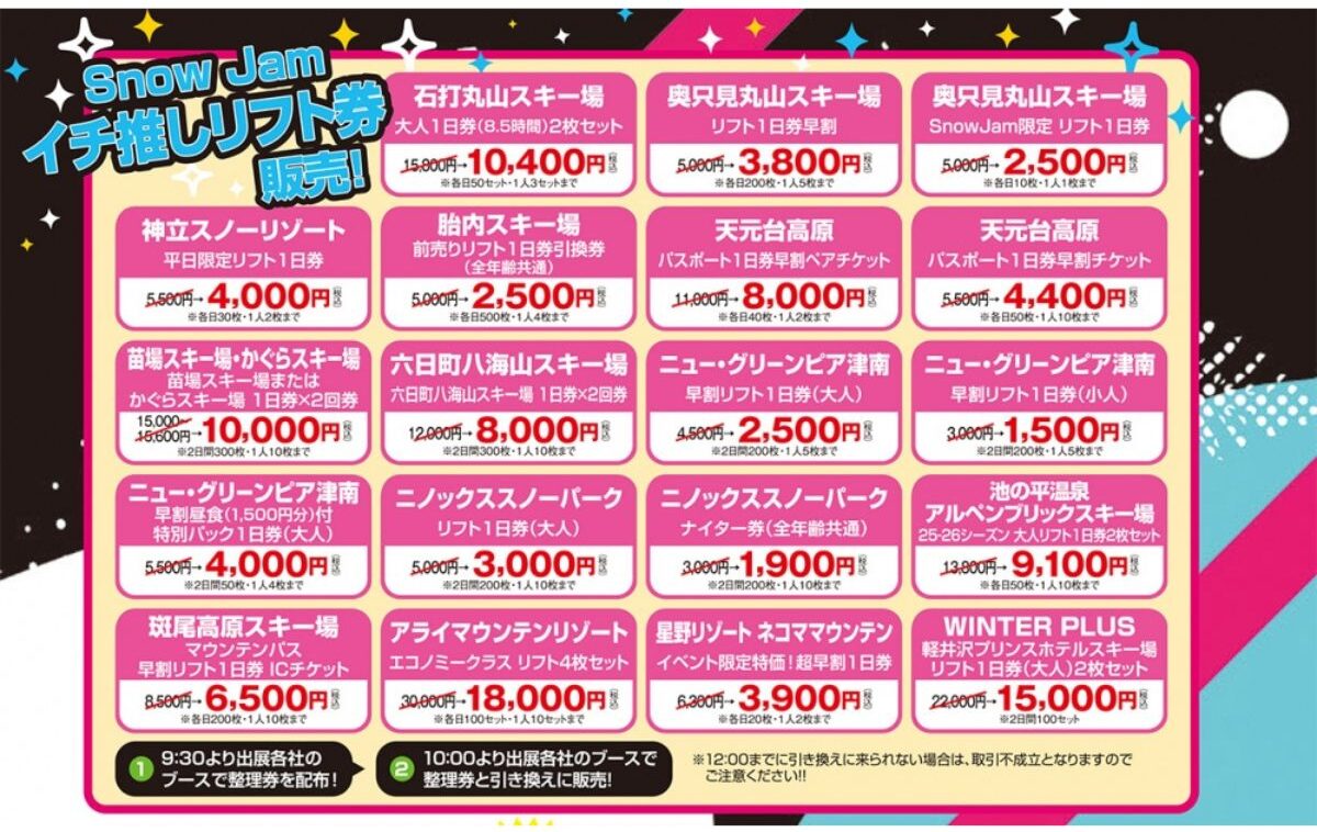 今シーズンの最新アイテム・ゲレンデ情報を提供するほか、リフト券などが“限定価格で販売”されますよ♪