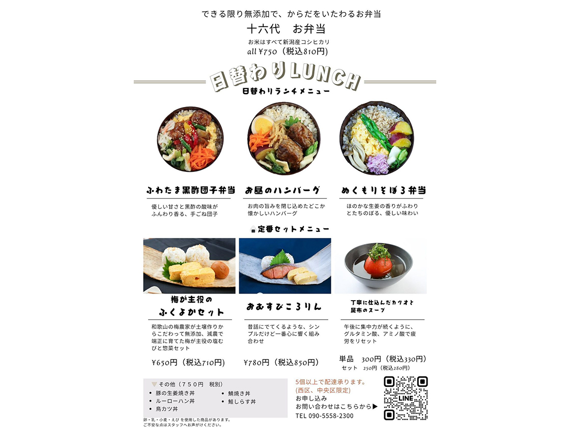 農家の嫁がむすぶおにぎり屋 十六代のお弁当メニュー