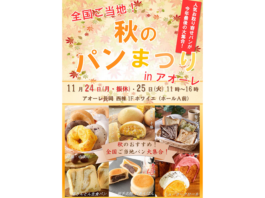 『全国ご当地!秋のパンまつり in アオーレ』は、11月24日(月)・25日(火)に開催です!