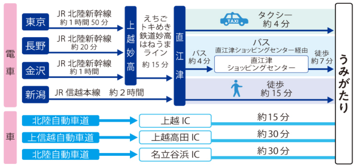「上越市立水族博物館」へは、えちごトキめき鉄道・JR「直江津駅」から徒歩約15分です♪