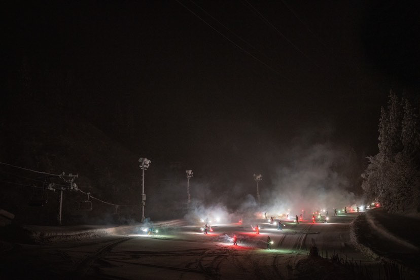 トーチを手にしたスキーヤーによる「松明滑降(たいまつかっこう)」では、美しい“光の軌跡”を生み出します!