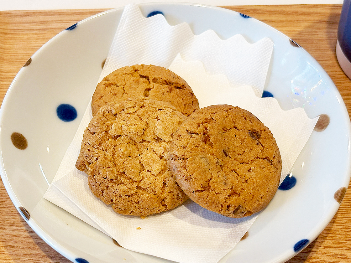 日替わりで異なる種類が楽しめて、この日は「オートミールクッキー・シナモンチョコレートクッキー・ジンジャークッキー」の3種類を頂きました!