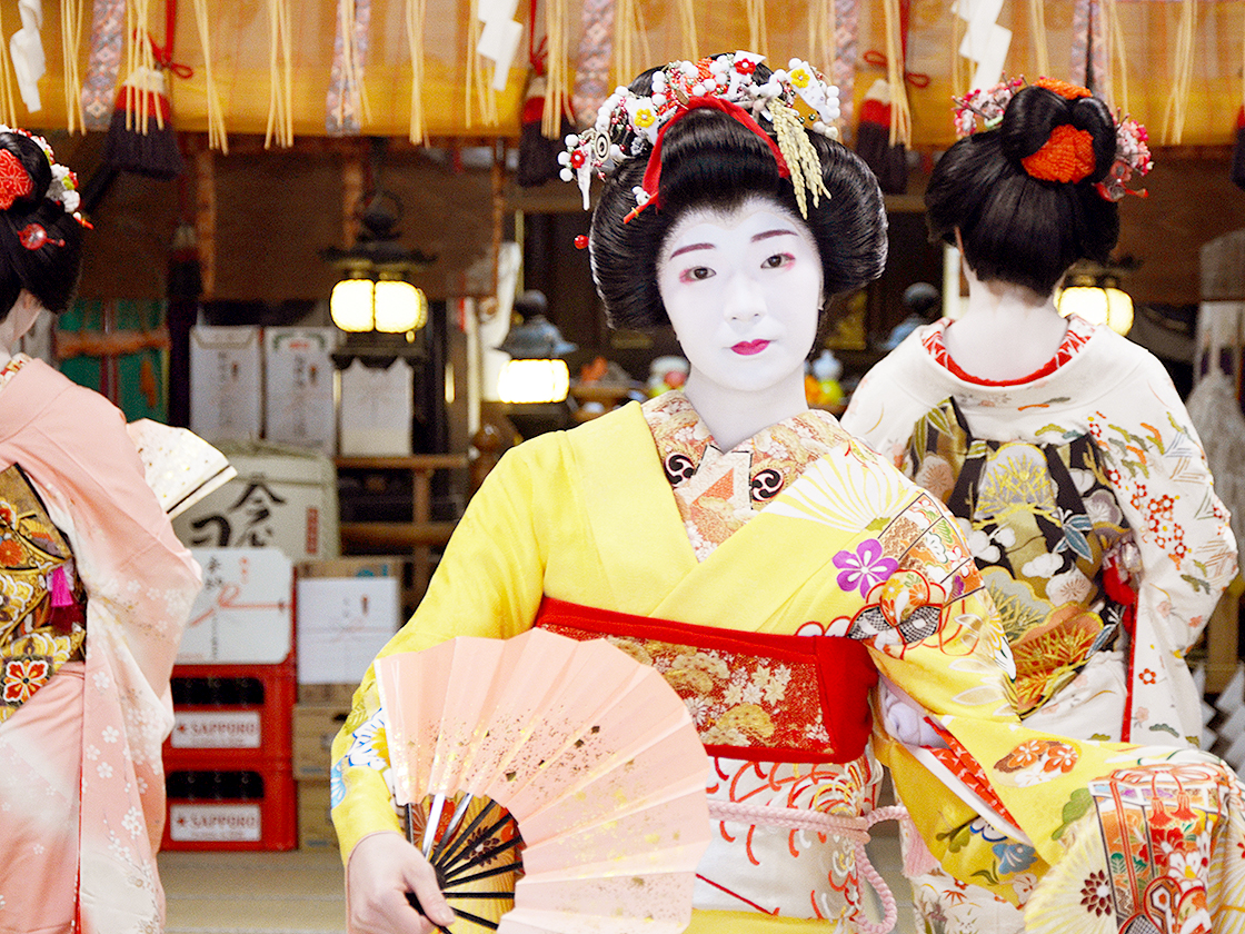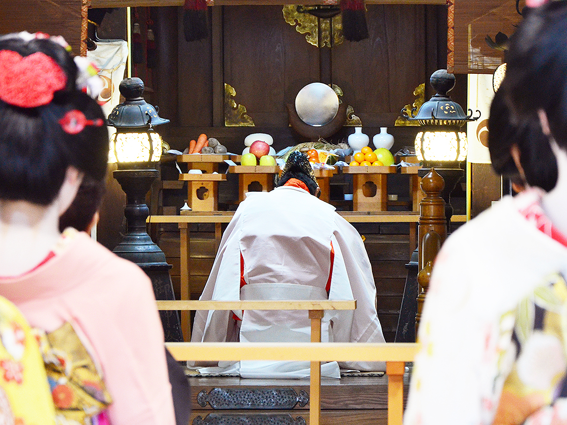 境内には“芸道上達の祭神”が鎮座し、芸妓たちは拝殿で祈祷を受けた後に舞を奉納します!