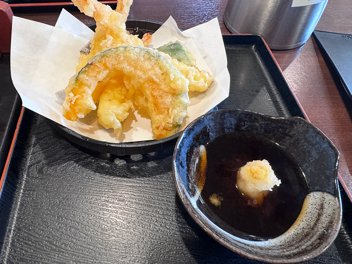 付け合わせの天ぷらは、海老・ナス・カボチャなど盛りだくさん!