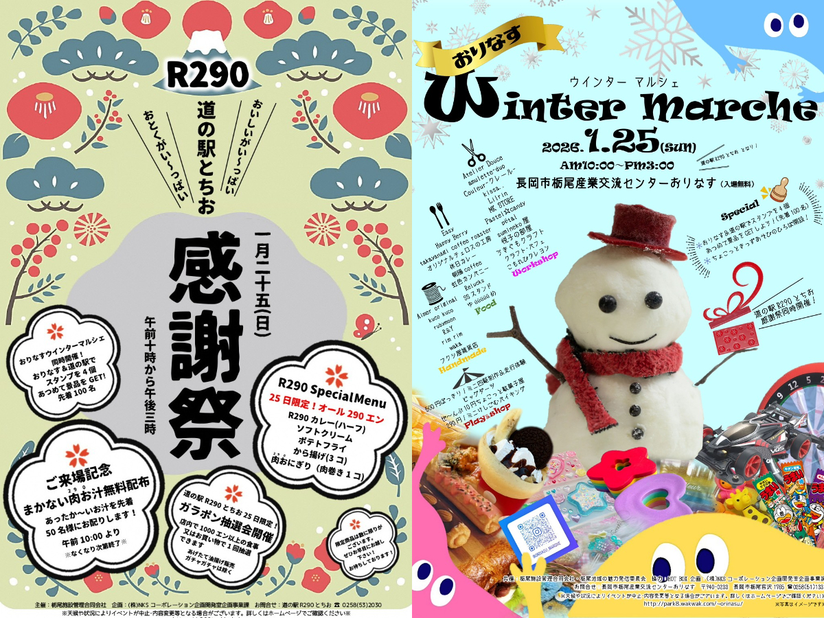 『道の駅R290とちお 感謝祭』と『おりなすウインターマルシェ』は、1月25日(日)に開催です!