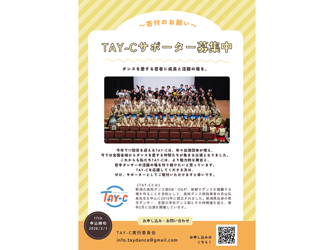 TOP > イベント > 新潟県内の“高校・大学ダンス部&OB・OG”が「新潟ユニゾンプラザ」に大集合♪『第17回 T・A・Y-C公演』が2月1日に開催!
