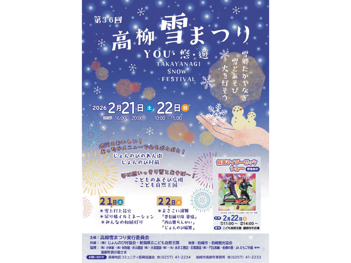 『第36回 高柳雪まつり「YOU・悠・遊」2026』は、2月21日(土)・22日(日)に開催です!