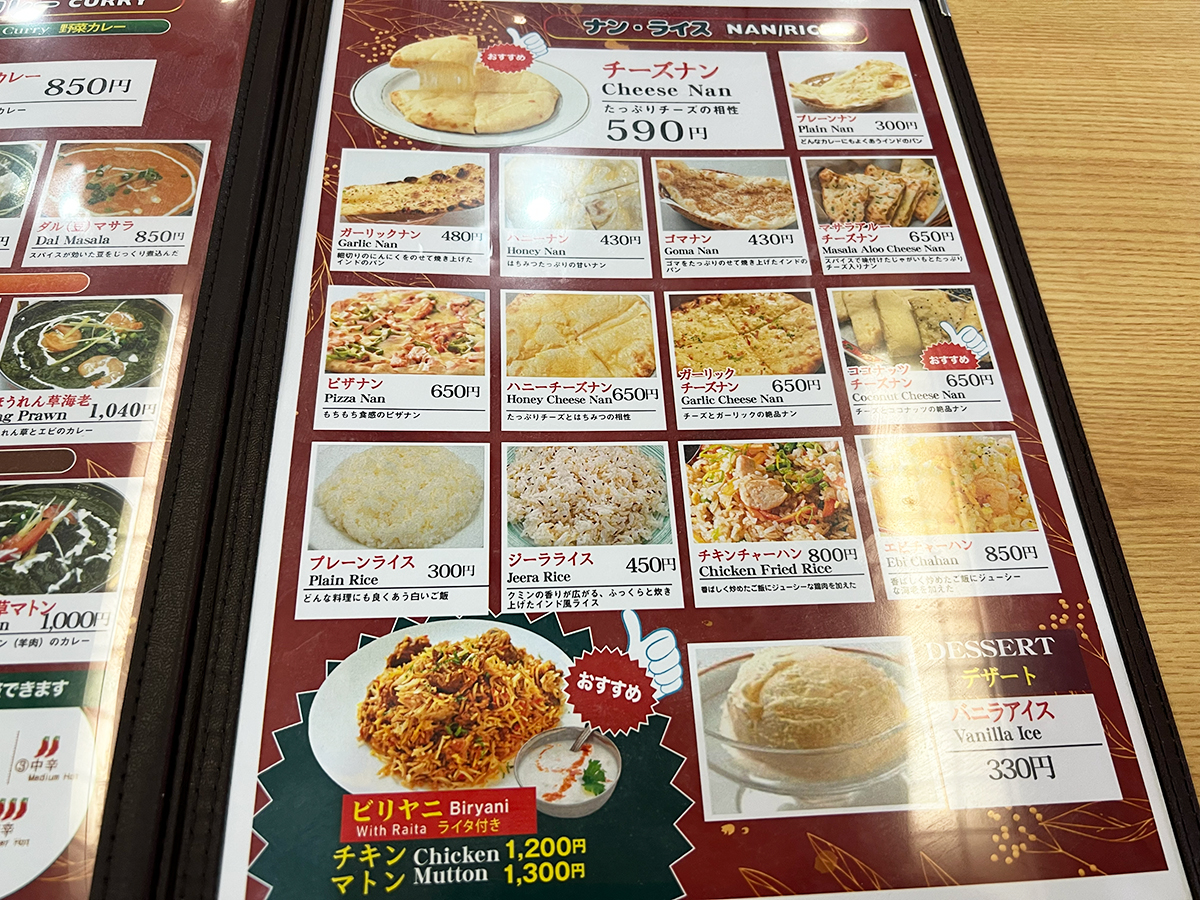 “ナン又はライスのお替わりが1回無料”というサービスも嬉しいですよね!