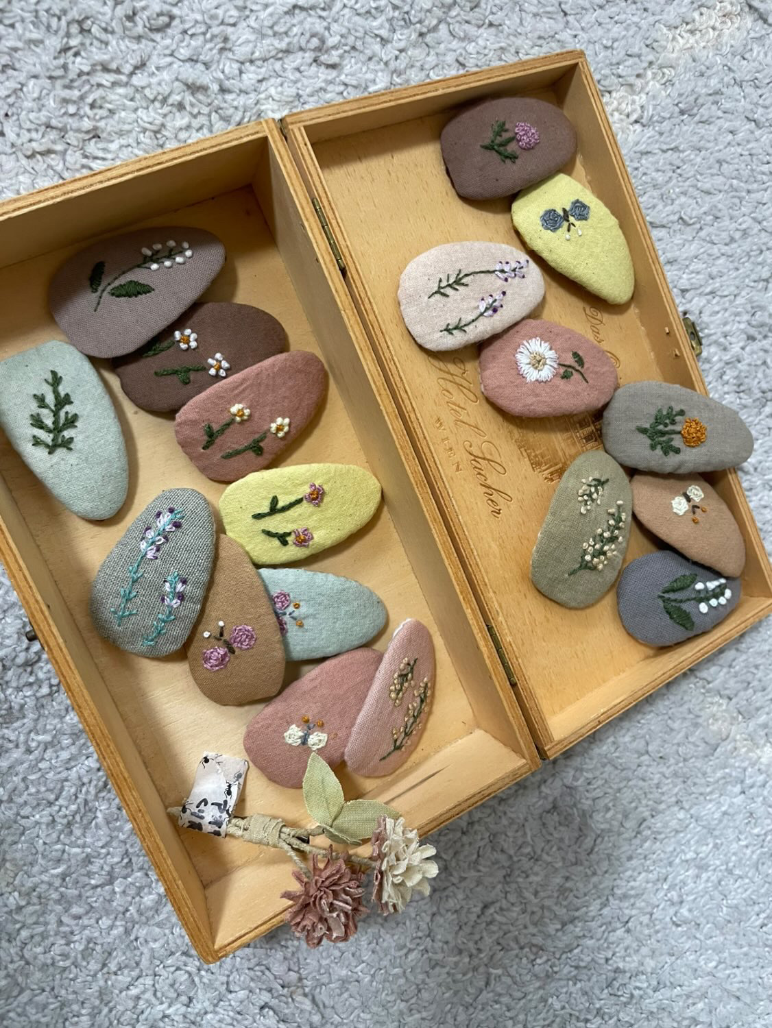 天然石のアクセサリーや草木染めのヘアピンは、春の装いにぴったり!